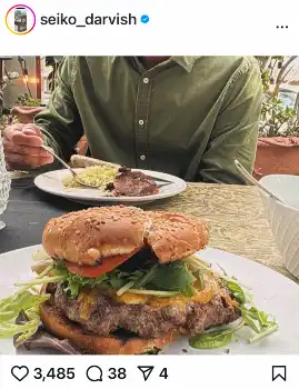 数日前から食事の様子の写真を投稿していた聖子さん。ビッグなハンバーガーやポテト、サラダなどさまざまなものをアップし、奥には男性の姿がチラリを見えるものになっている。