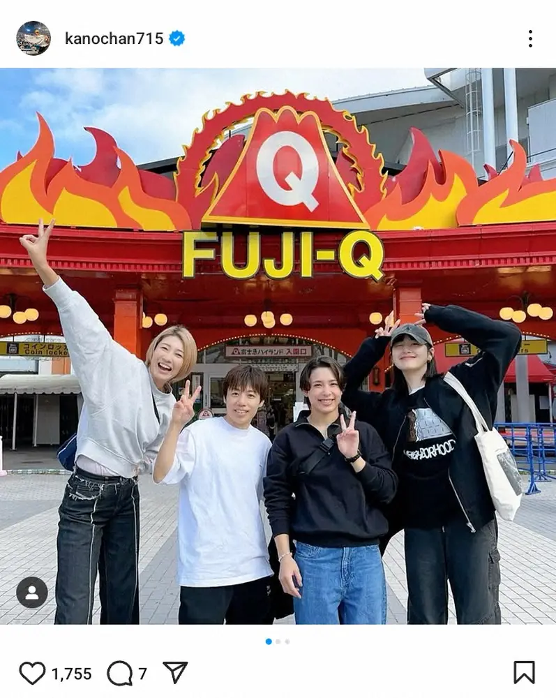 そして「アトラクション待ちの時間ではたまたま遊びに来られてたとあるパリオリンピック金メダリストと遭遇 その場に金メダリスト2人いるという奇跡が起きました笑」と、もう一人の金メダリストの名前こそ明かさなかったが、まさかの遭遇を伝えた。
