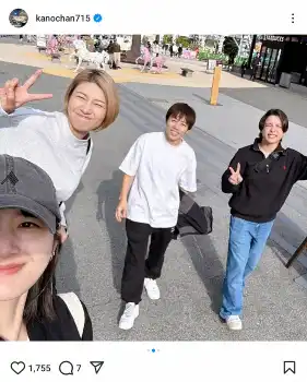 狩野さんは「貴子ちゃんがみんなに声掛けてくれて大人の遠足が実現!!絶叫好き4人が集まりました笑」と報告。総合格闘家の浜崎朱加、モデルの稲垣貴子、パリ五輪柔道女子57キロ級で金メダルを獲得した出口クリスタとの写真を公開した。