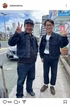 インディアンスきむ 「私服が被りました」「親父と息子やん」人気お笑い芸人と2ショットに「可愛い」
