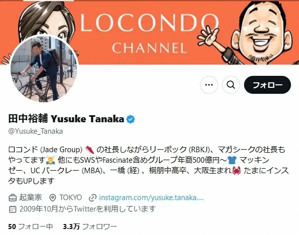 田中裕輔社長のX@Yusuke_Tanakaから