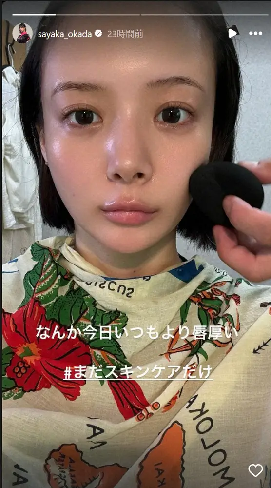 岡田紗佳 「#まだスキンケアだけ」メーク前のすっぴんショット披露「なんか今日いつもより唇厚い」