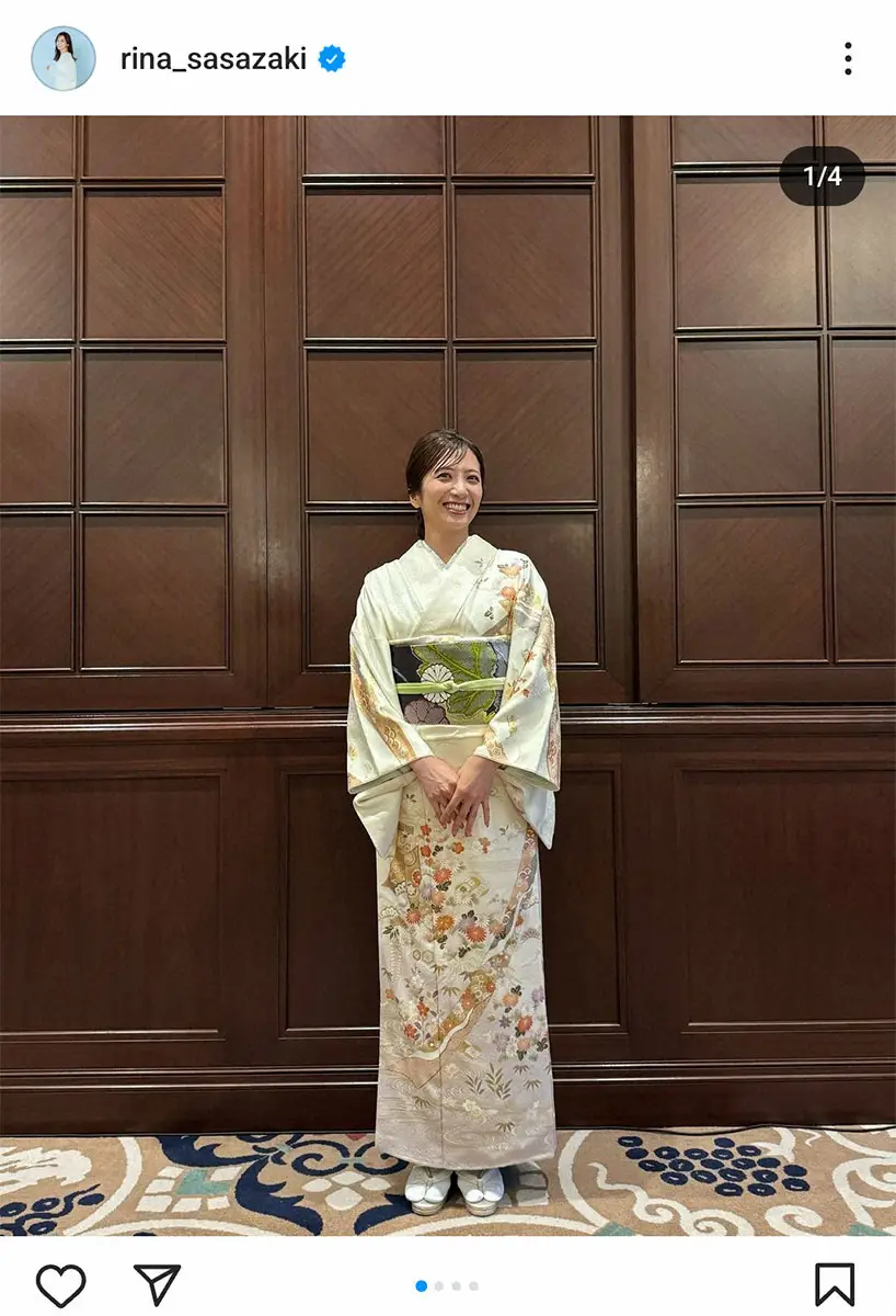 元日本テレビでフリーアナウンサーの笹崎里菜(32)が16日、自身のインスタグラムを更新。自身へのご褒美に購入した和服姿を披露した。