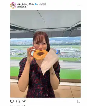 皆藤愛子 大きなドーナツをパクッ 「ほおばる愛ちゃん可愛い」「顔の大きさと変わらない」の声