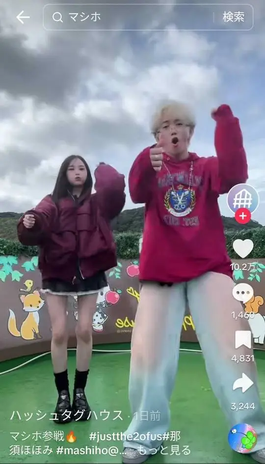 28日にTikTokに投稿された動画には、福岡出身で“あざとかわいい博多弁”でブレイクしたメンバーの那須ほほみとともに、TREASUREの元メンバー・MASHIHOが初登場。「マシホ参戦」という一言ともに、MASHIHOが作詞作曲を手掛けた楽曲「Just the 2 of us」に合わせて踊る2人の様子が公開された。