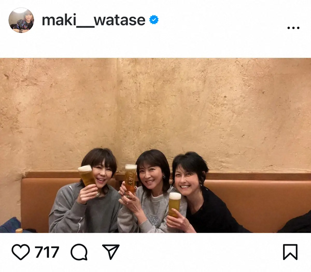 「3人で作戦会議しました」と元プリンセスプリンセスの岸谷香、歌手の森高千里とのスリーショットをアップ。「片手にビールもってるけど真面目にやりました!今から楽しみです よろしくお願いしま~す」とつづった。