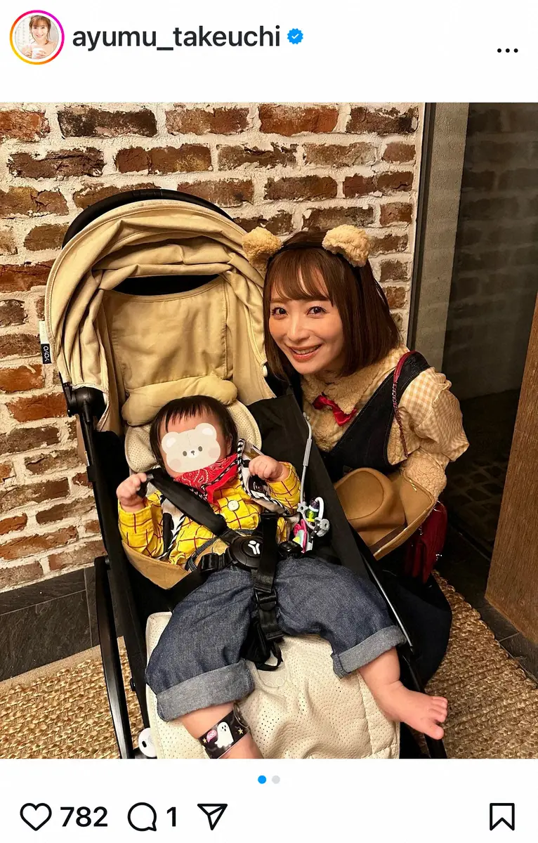 俳優・白洲迅(31)の妻で、タレントの竹内渉(あゆむ、38)が30日までに自身のインスタグラムを更新。今年2月に誕生した長男との初めてのハロウィーンショットを披露した。