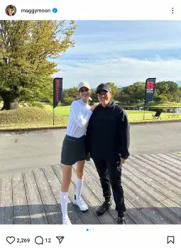 マギーは「みんなに聞いてほしい!!!」と呼びかけ、「中学生の時に同級生だったお友達に17年ぶりに再会したの!プロゴルファーの遥加」と、元プロ野球選手・工藤公康氏の長女で、俳優・工藤阿須加の妹にあたる女子プロゴルファー・工藤遥加との2ショット写真を公開した。