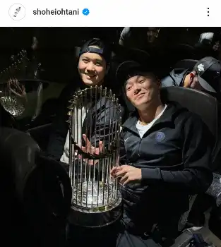 大谷翔平 世界一の喜び投稿 最大の注目はデコピンの表情「完全に二日酔いのドジャースファンで草」