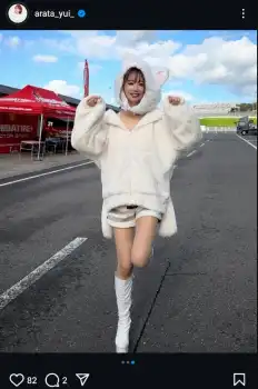 “美しすぎるラウンドガール”あらた唯 ショーパン白猫コスプレ披露に「めっちゃ足細い」「可愛すぎ」