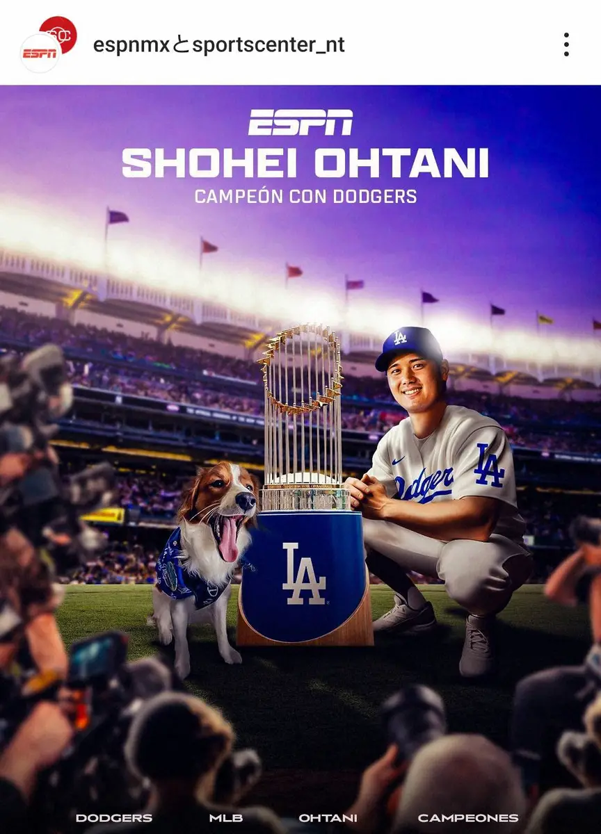 また、スポーツ専門局「ESPNメキシコ」はインスタグラムで「皆さん、大谷が初のワールドシリーズチャンピオンを祝う。野球、日本、デコイが祝う」と投稿。ワールドシリーズトロフィーの前で大谷とデコピンがポーズを取り、多くのカメラマンから記念撮影される記念画像も作製した。