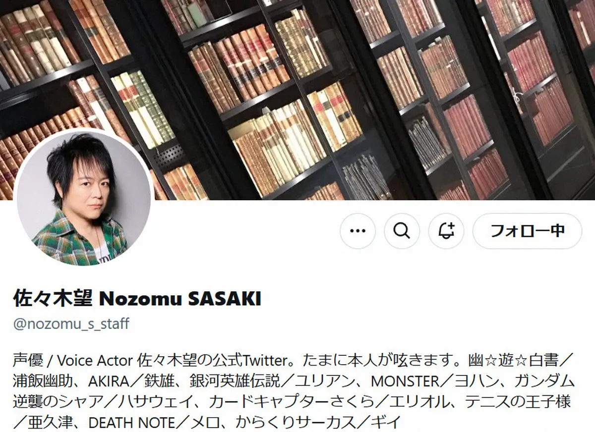 テレビアニメ「幽☆遊☆白書」の浦飯幽助役などで知られる声優の佐々木望(57)が1日、青二プロダクションに移籍したことが同事務所の公式サイトを通じて発表された。