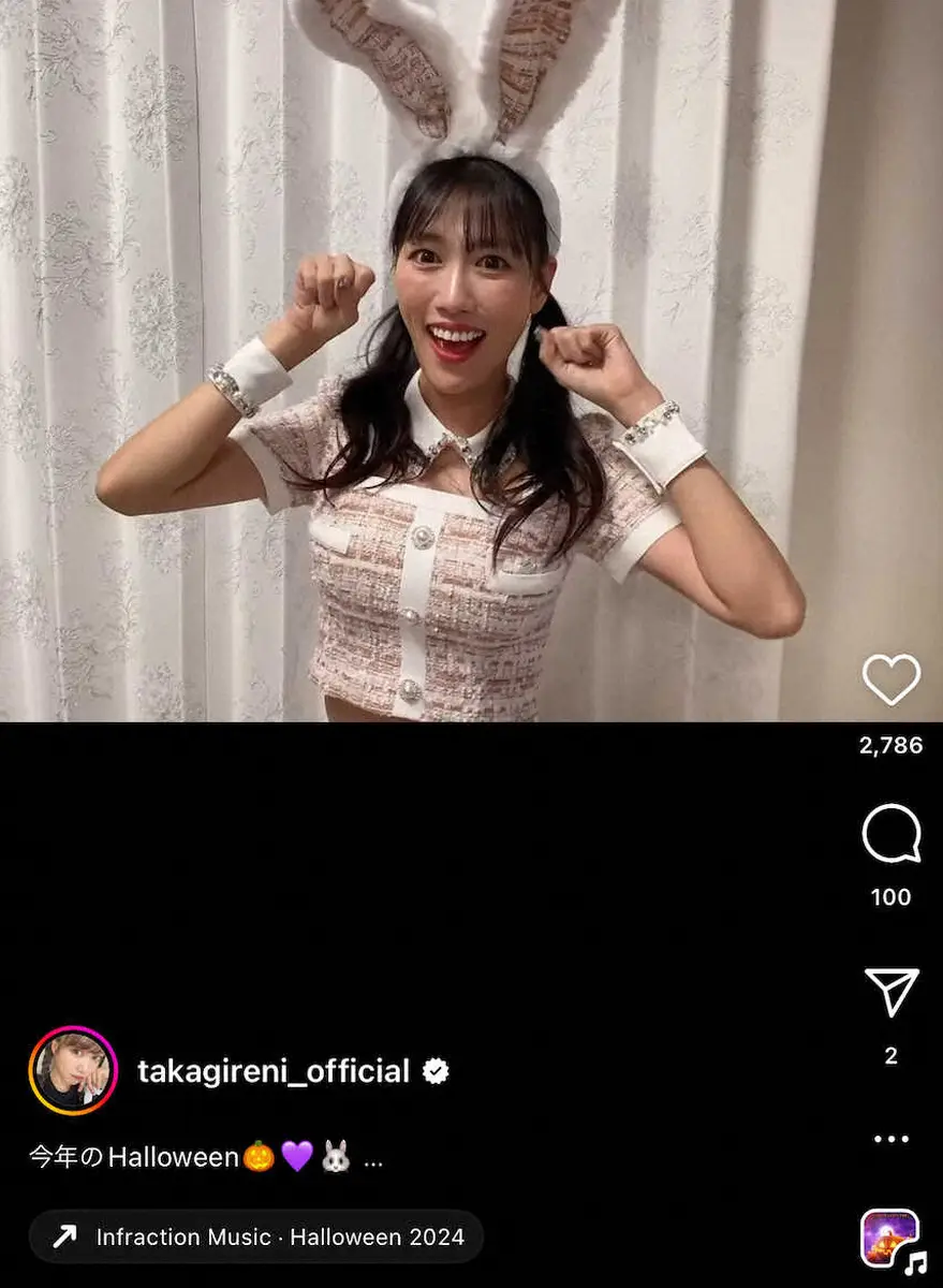 自身のインスタグラムで「今年のHalloween」と題して「ぴょんです」と紫のハートマークとともに記してうさぎのコスプレ動画を公開。最後に「どっちをえらぶ?」とうさぎと猫の絵文字とともに何かを示唆させた。
