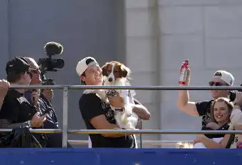 メジャー史上初の「50-50」を達成した大谷は3号車に乗車し、真美子夫人と愛犬・デコピンの姿がチラッと映る場面も。選手は日本とは違い、捕手のバーンズやロハスなどバスで葉巻を楽しんだり、バドワイザーのロング缶を飲むなどリラックスした様子だった。