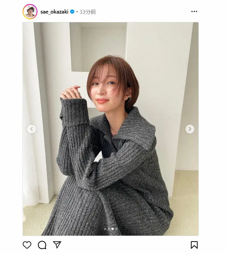 岡崎は「本日で29歳になりました」と報告。さらに「ラスト20代!ということで髪をバッサリ切りました いえい!!」とつづり、ロングヘアからショートヘアにイメチェンしたことを明かし、最新ショットをアップした。