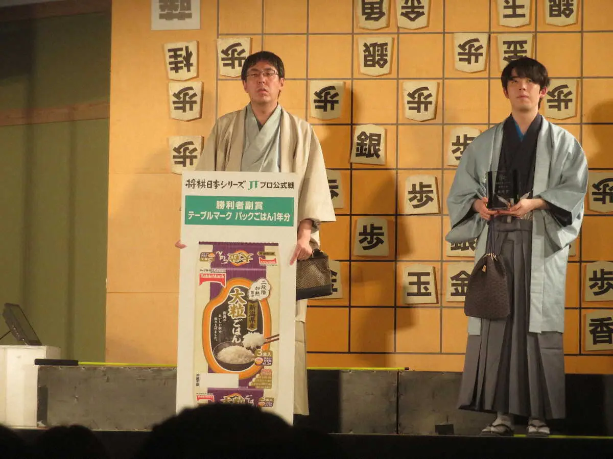 「こっちの攻めが細い。全体として厳しい感じで指した」。相掛かりから飛車と金桂の2枚替えへ進めたが、終局後はその直前、58手目に9筋の歩を突いた緩手を悔いた。