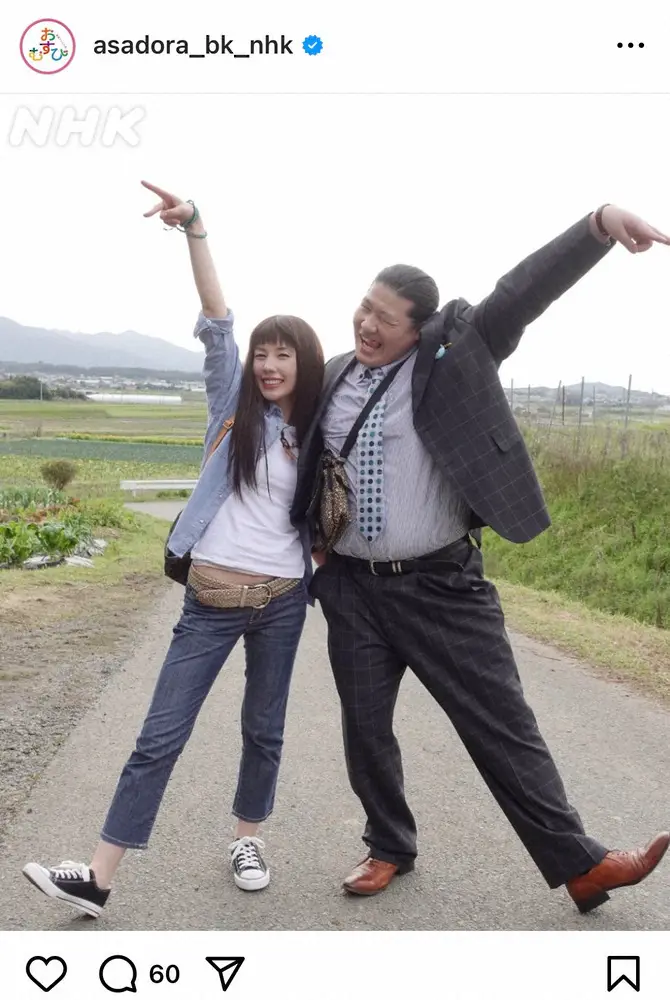 女優・橋本環奈(25)がヒロインを務めるNHK朝の連続テレビ小説「おむすび」(月~土曜前8・00、土曜は1週間振り返り)の公式インスタグラムが2日までに更新され、女優の仲里依紗(35)と俳優の一ノ瀬ワタル(39)の2ショットを公開した。