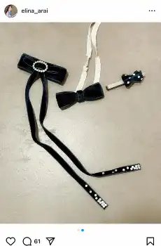 「セルフで髪をセットするのは苦手なので、髪飾りを作りました」と書き出すと、ストーンがついたリボンの髪飾りを披露。