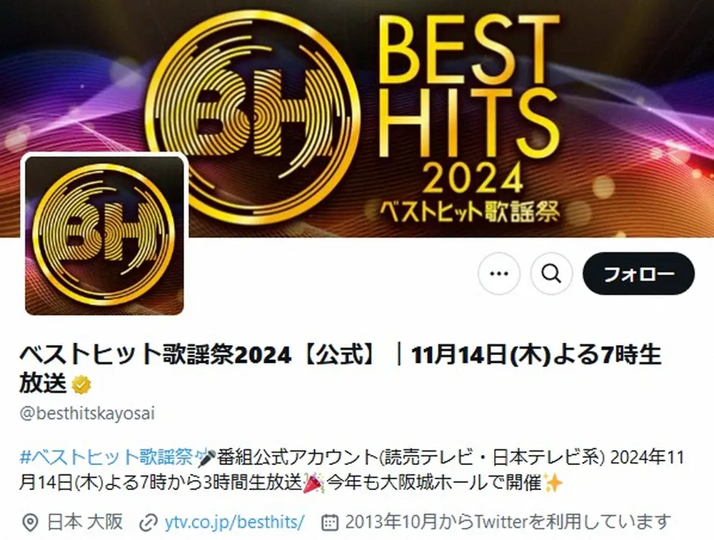 14日に放送予定の日本テレビ系音楽特番「ベストヒット歌謡祭2024」(後7・00)の公式X(旧ツイッター)が7日に更新され、番組観覧チケットの転売について注意喚起した。