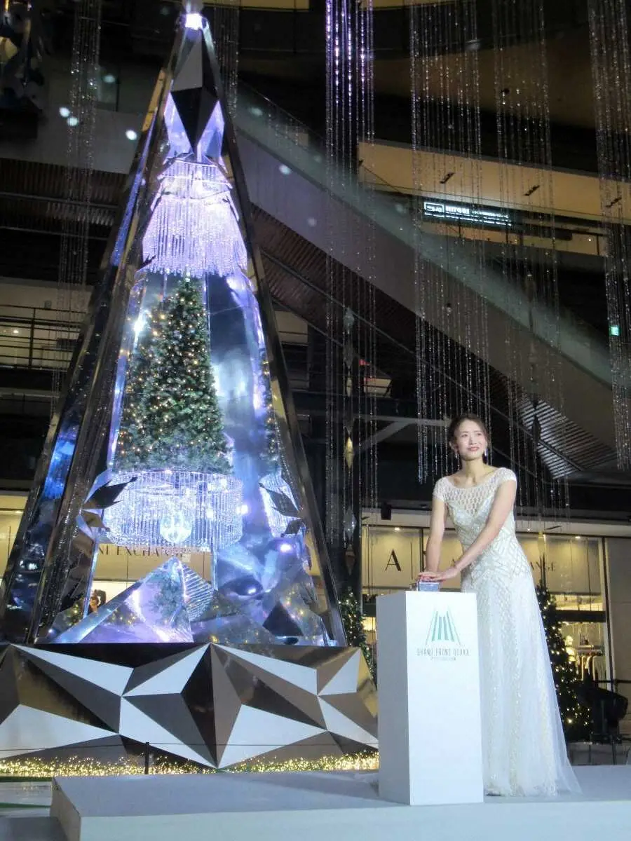 古賀紗理那さんが大阪でクリスマスツリー点灯式にドレスで登場 今年の聖夜の過ごし方は