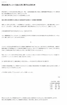 「この取下げに関して、両者を含む関係者の間で、金銭の支払い、ないしその約束がなされたことはありません」とし、「本件は取下げとなりましたので、両者はもちろん、女性たちを含む関係者の静謐を乱す行為や誹謗中傷等は厳にお控えください。本件についてご報告できる内容は以上のとおりです」と声明を発表した。