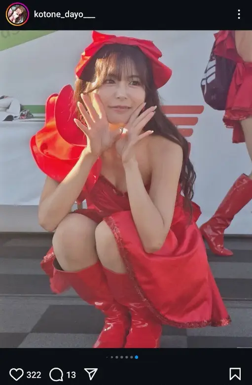 水瀬琴音公式インスタグラム(@kotone_dayo___)から デカ盛りレースクイーン・水瀬琴音 真っ赤なミニスカ衣装姿披露に「最上… ギャラリーで見る この記事のフォト 2024年11月08日の画像一覧 もっと見る 2024年11月08日の画像をもっと見る