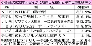 「ぐるナイ」の特番は例年、年末に放送され高視聴率を記録。昨年は12月28日に放送され、平均世帯視聴率は12・1%(ビデオリサーチ調べ、関東地区)。大みそかのテレ朝「ザワつく…」の12・3%と比べても遜色ない数値を記録した。