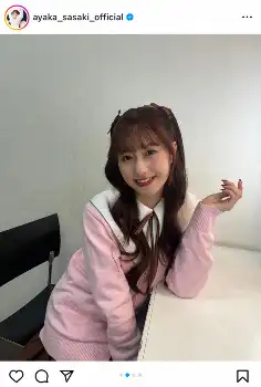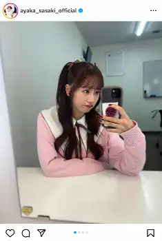 佐々木は「ひさびさの制服でした」とつづると、ピンクのカーディガンが印象的な制服姿の、鏡越しの自撮りショットをアップ。