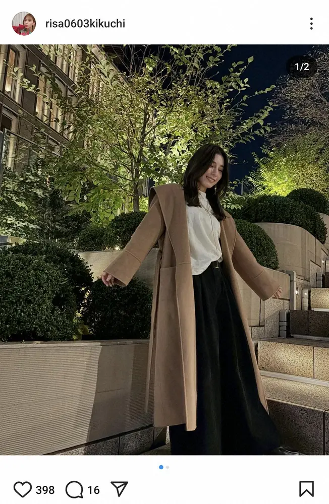 今年1月以来となる菊池の投稿に、フォロワーからは「りさちゃん お久しぶりです。とっても素敵な笑顔ですね。いつも頑張ってる奥さんママですもの、こんな日があってもいいんですよね。時々お話おしえてくださいね」「梨沙さんお久しぶりで嬉しいです 息抜きは大事ですよね」「ファッションがシックでとても素敵です」「たまにはママも楽しまなくっちゃ♪」「リフレッシュできたようでなによりです」といった反響が寄せられている。