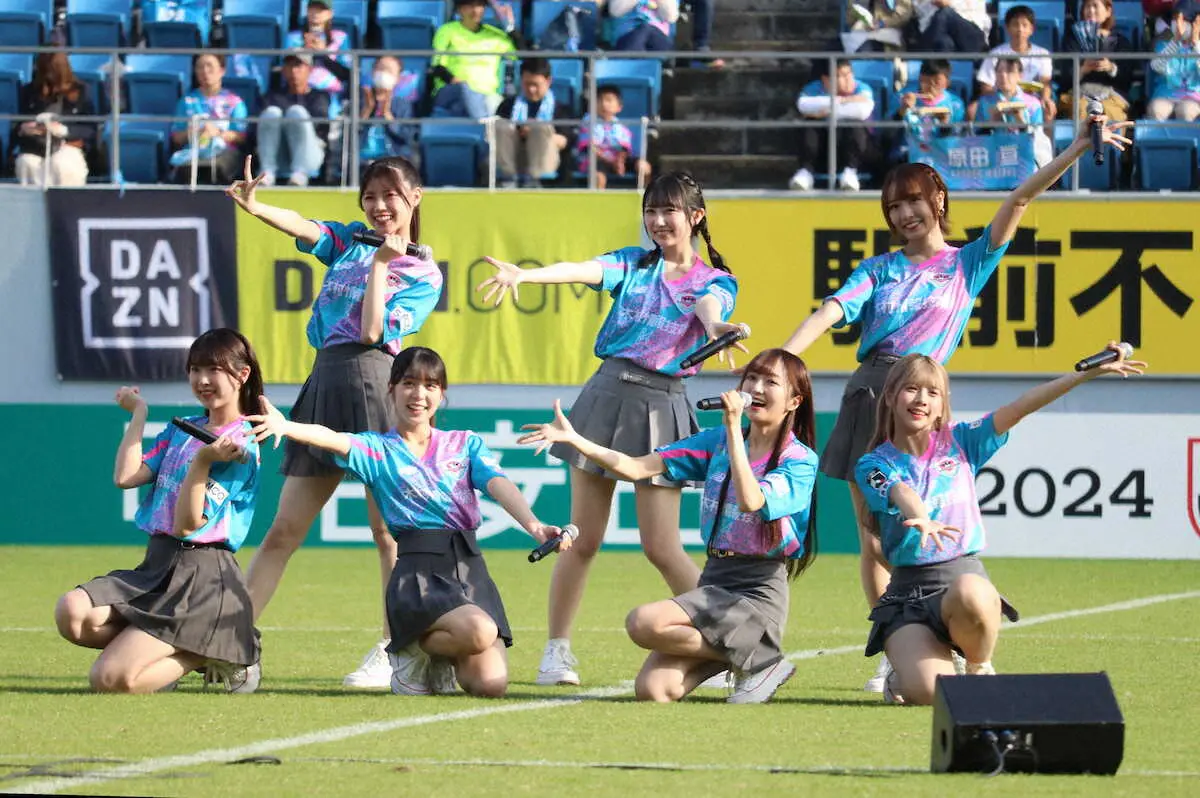 ハーフタイムショーには初出演となったラフ×ラフ。日比野は「スタジアムのど真ん中で、お客さんが360度いる中で大喜利することになるとは思っていなかった。でも選手の方にも映像で大喜利をやっていただいて、すごい楽しかったです!」と満足げ。隣県の福岡県出身の永松波留(18)は「地元にも近くて“帰ってきたな”って思いました。めちゃくちゃ緊張したんですけど、初めての方も手を振ってくれてうれしかった」と“凱旋”を喜んだ。幼少期は北海道で過ごしたという高梨結(23)は「北海道でもスポーツのイベント、ハーフタイムショーに出られたらうれしい」と今後の夢を思い描いた。