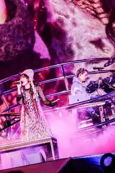 ライブタイトルは「超現実」。巨大LEDパネル、無数のレーザー光線、火柱、花火、ドームの天上を使用したプロジェクションマッピング…。思いつく限りの装置が使用され、その言葉通りの高揚感あふれるステージとなった。