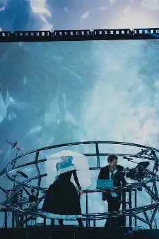 代表曲「アイドル」では、5万人が一体となり「オイ!オイ!」の大合唱。この日は観客全員に遠隔制御で光るリストバンドが配布され、曲調の変化に合わせて色が変化。文字通りファンとともに作り上げた空間にAyaseは「おまえら、マジ最高!5年前には想像もしていなかった光景です」と感極まった表情を浮かべた。終盤には2人がドーム内を航行する気球に乗ってパフォーマンスをするド派手演出も取り入れられ、驚きのあまり口を大きく開く観客もいた。