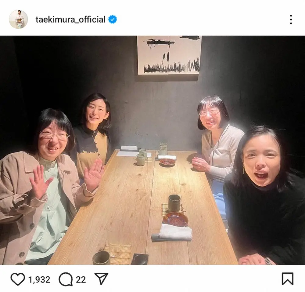 女優の木村多江(53)が12日、自身のインスタグラムを更新。人気芸人らとの写真を披露した。