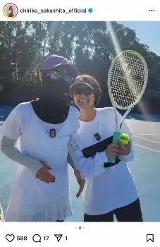 まるで忍者? 坂下千里子“テニサー”活動で完全防備姿を披露「楽しそう」「ニンニン」の声