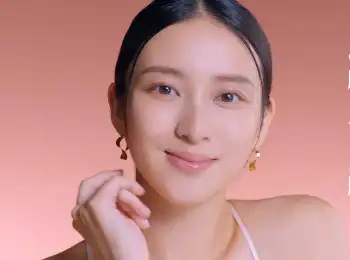 きめ細かい美肌に美容液をなじませ、透明感を表現した動画。