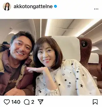 「原田龍二さんと偶然!」とつづり、新幹線車内でのツーショットを投稿。「舞台『水戸黄門』名古屋御園座公演お疲れ様でした!」と記した。