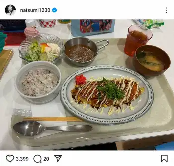 小川は「吉本の社食」とコメント。「ワンコインランチ『とんぺい焼き定食』食べました」と写真を公開し、「これでお稽古頑張れる、、、と、思う」とつづった。