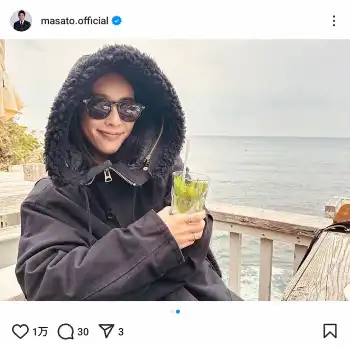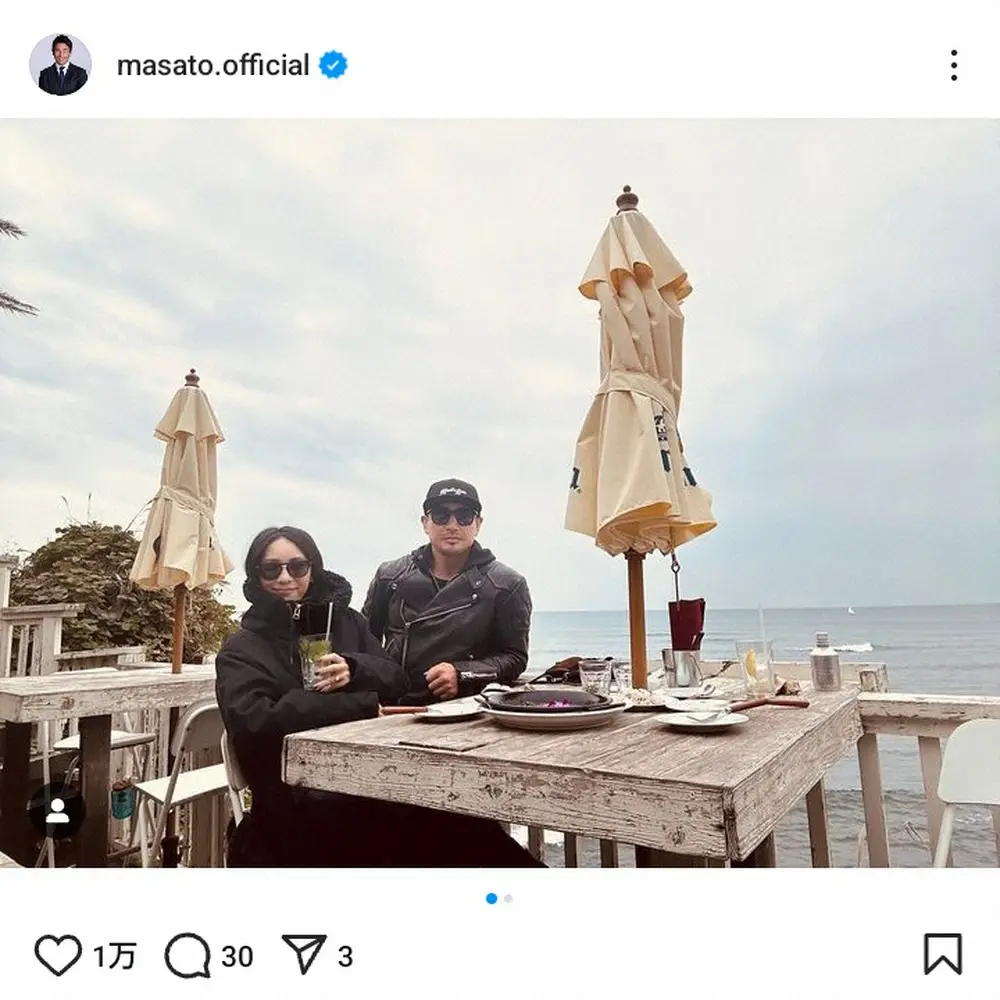 魔裟斗は「子供達を学校に送った後 バイクでランチツーリング!」と報告。海が見えるロケーションで、妻とランチを楽しむ様子を公開した。