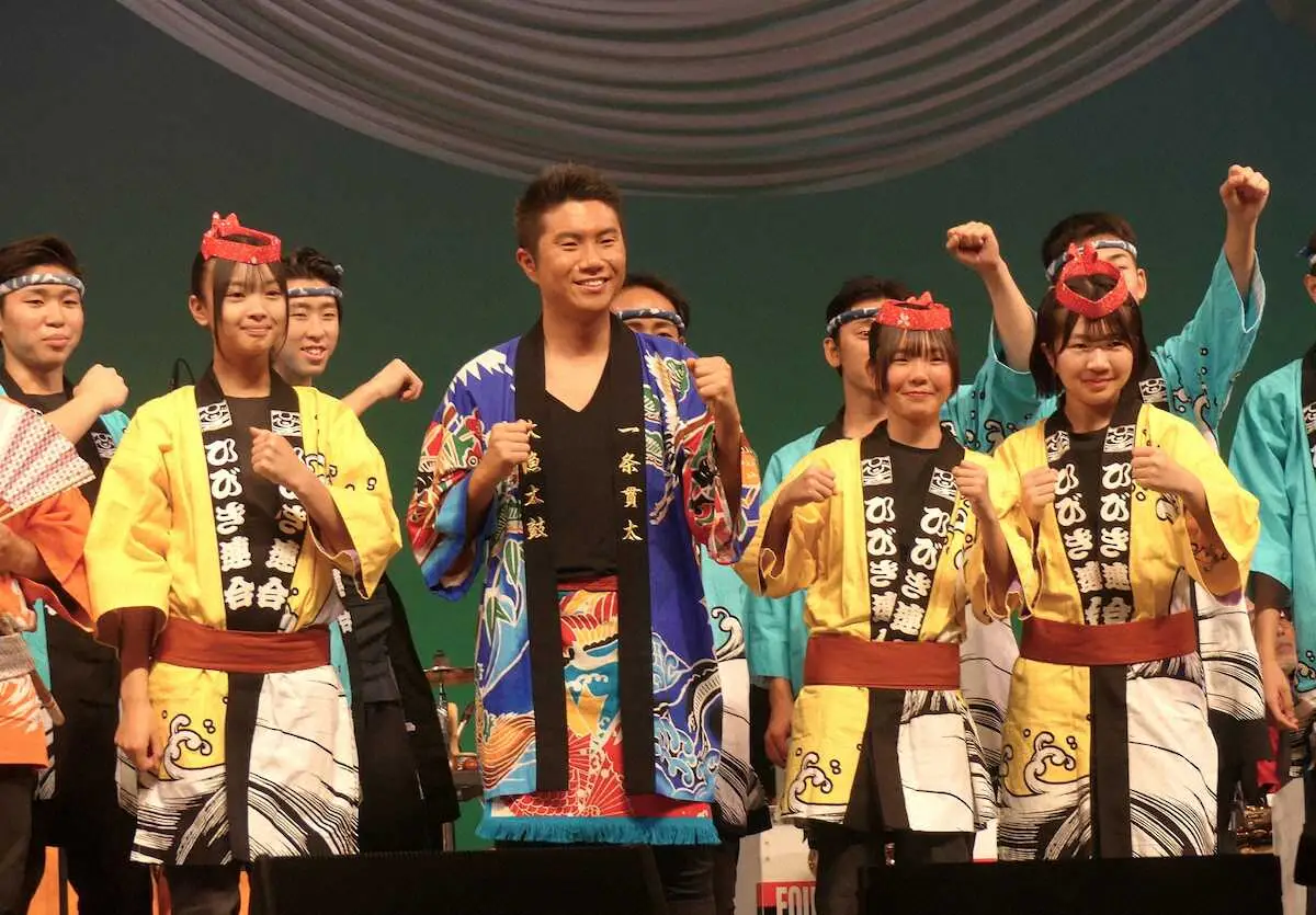 終盤には、ミュージックビデオに出演した縁で、千葉県銚子市の伝統芸能「銚子ばやし」の保存団体「ひびき連合会」のメンバー14人が応援に駆けつけた。