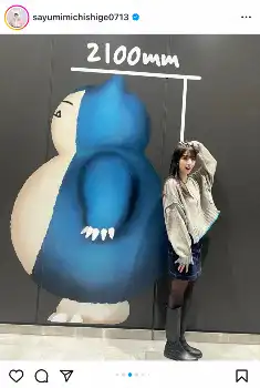 2日から15日にかけて、渋谷の商業施設でポケモンが登場するイベントが開催されていたことから、道重は巨大なカビゴンのイラストと背比べをするショットや、ピカチュウと手をつないで見せた写真も披露。「この日、普段こんなに歩く事ない!今後もこんなに歩く事ない!ってくらいポケモン探して渋谷を練り歩いたよ笑 楽しかった!!」と振り返った。