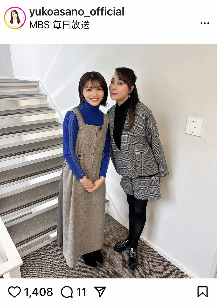 女優の浅野ゆう子(64)が16日、自身のインスタグラムを更新。人気アナウンサーとのツーショットを披露した。