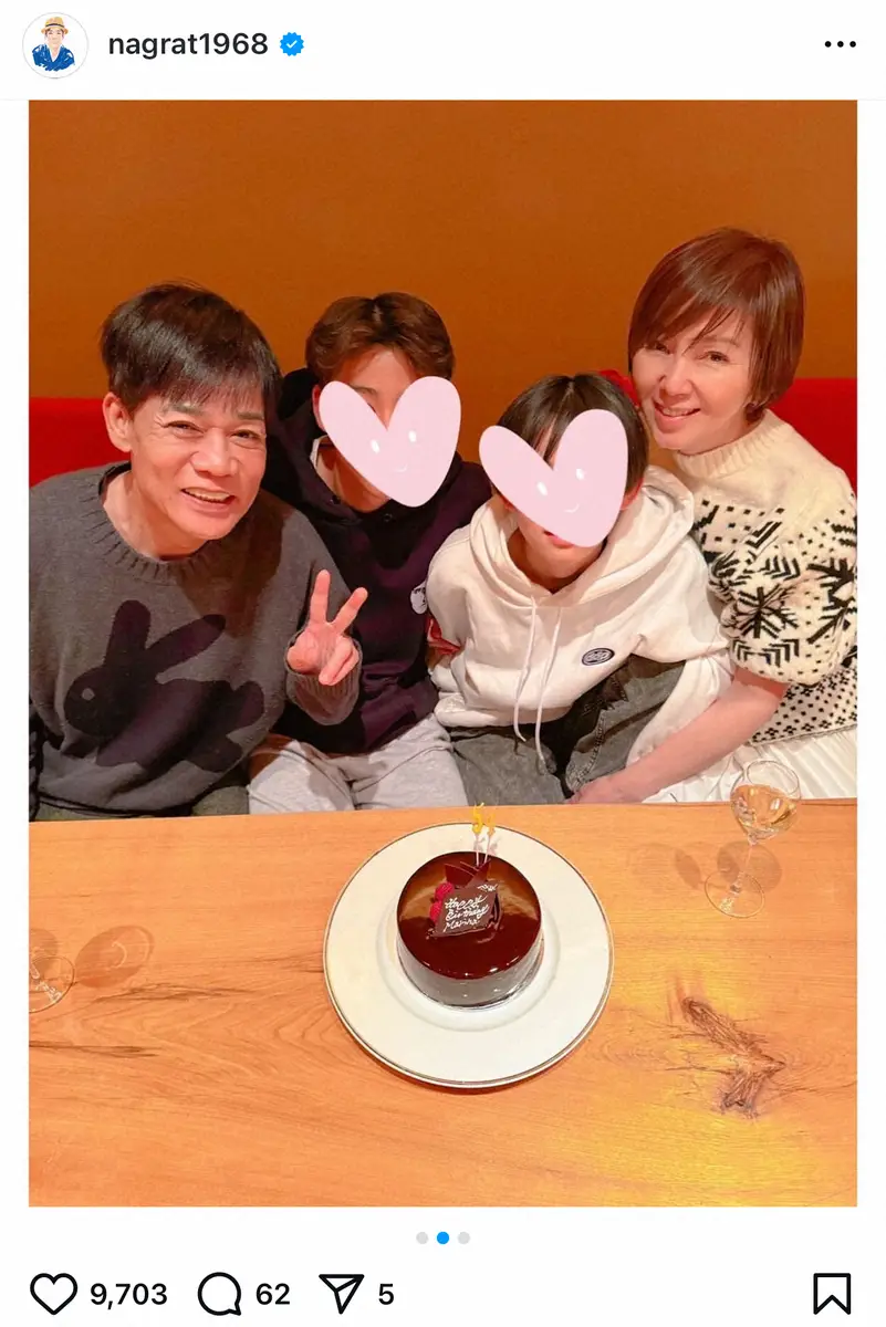 名倉潤「家族でお祝い」妻・渡辺満里奈の54歳の誕生日祝福!家族ショットも公開「心からありがとう」