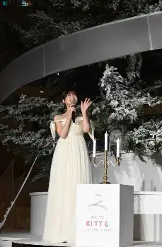 生見が「エンジェルライトのフォトスポット」に飾られたろうそくに息を吹きかけると、クリスマスツリーが点灯。会場からは「うわ~」と感嘆の声が上がった。めるるも「わ~」と声を上げながら、約3万球ものLEDを纏った光り輝く全長約13.5mのツリーを見上げていた。