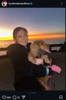 この投稿にフォロワーらからは「何も言う事無いです!最高です!」「海辺のサンセットを楽しみながら愛犬との散歩癒やされます!!」「素敵です」「お美しい」「kumikoさんも娘さんも勿論ですが・・・背景も美しい・・・」などの声が寄せられている。