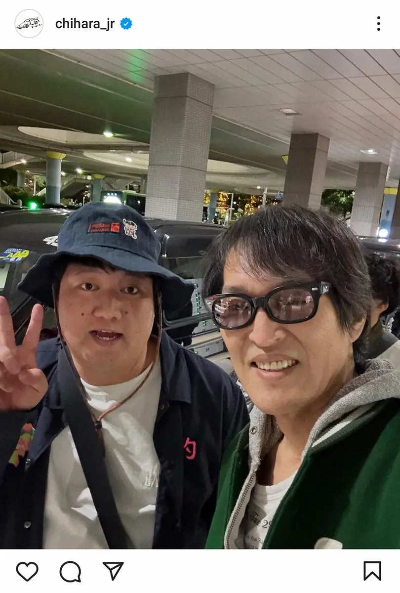 お笑いコンビ「千原兄弟」の千原ジュニア(50)が19日、自身のインスタグラムを更新。ばったり遭遇した人気芸人とのショットを公開した。