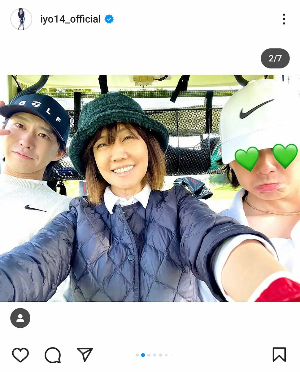 歌手でタレントの松本伊代(59)が19日、自身のインスタグラムを更新。夫でお笑いタレントのヒロミ(59)、長男で俳優の小園凌央(29)、次男の4人で家族ゴルフに出かけたことを報告した。