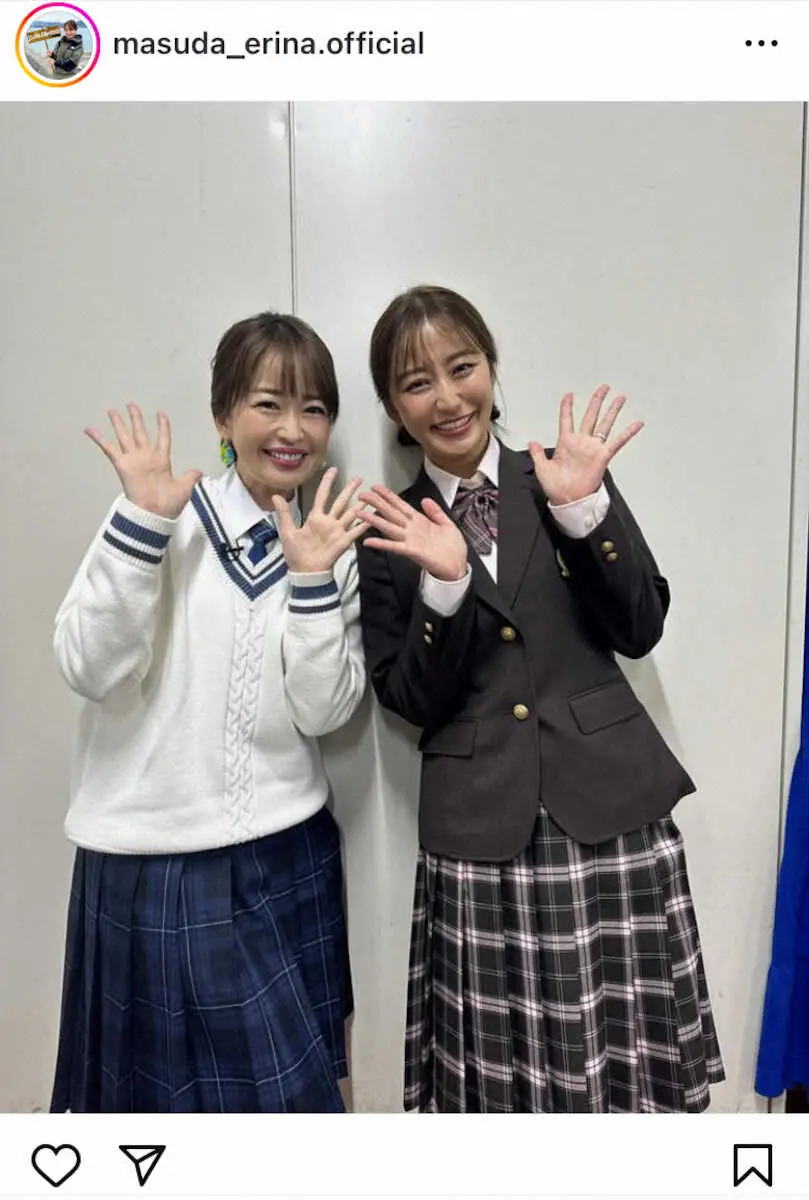 元TBSのフリーアナウンサー・枡田絵理奈(38)が、20日までに自身のインスタグラムを更新。会いたかったというアナウンサーとの番組共演を喜んだ。