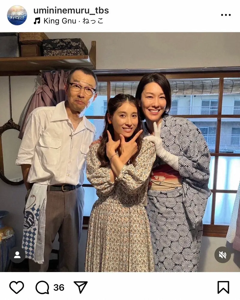 「海に眠るダイヤモンド」 家族3人で…百合子家の仲良しオフショットに「これ見てまた泣いてしまいそう」