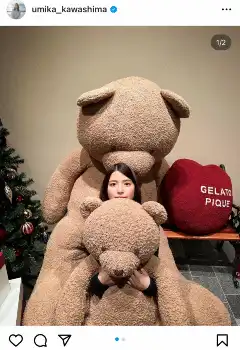 川島海荷「くまみれ」 ビッグサイズのぬいぐるみに埋もれる最新ショットが「優勝」「癒される」と話題に