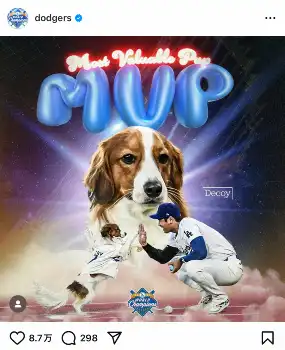 大谷翔平MVP ファン気付いた!デコピンの服 “逃走”の瞬間、映り込み驚きの声「デコちゃんまで…」